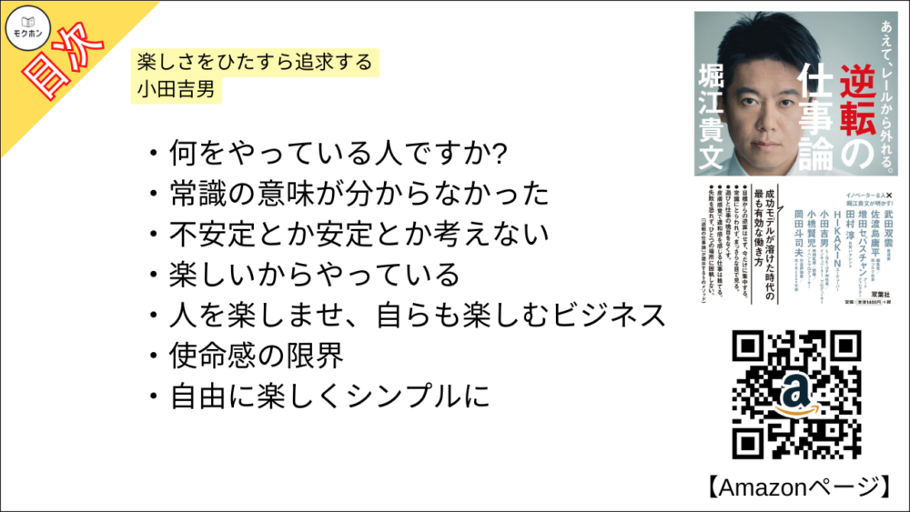 【あえて、レールから外れる。逆転の仕事論 目次】楽しさをひたすら追求する – 小田吉男【堀江貴文(ホリエモン)・要約・もくじ・モクホン】