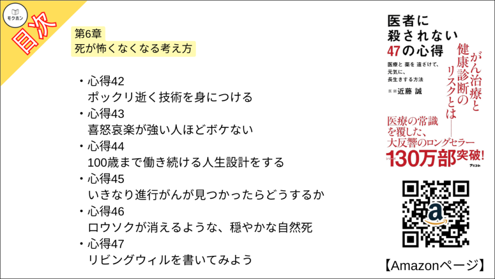 【医者に殺されない47の心得 目次】第6章 死が怖くなくなる考え方【近藤 誠・要約・もくじ・モクホン】