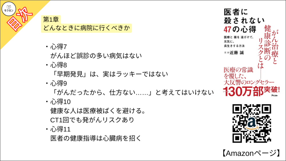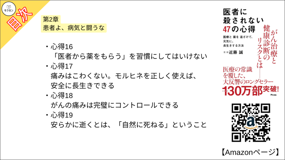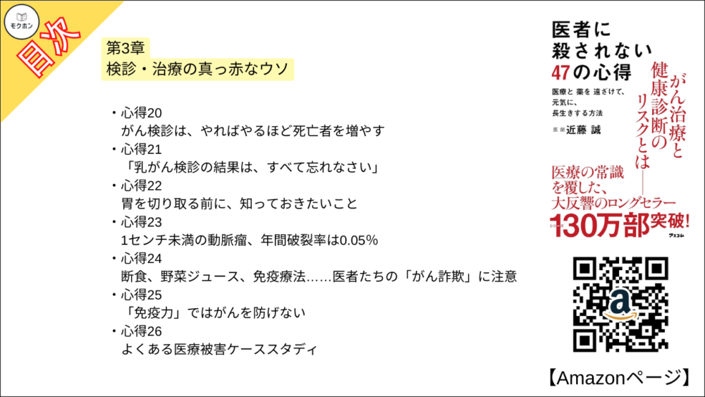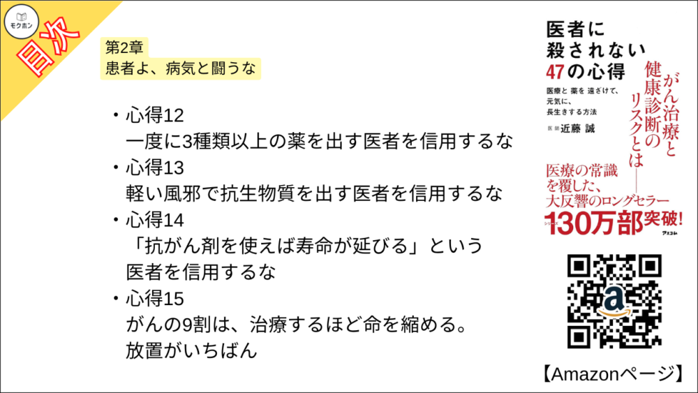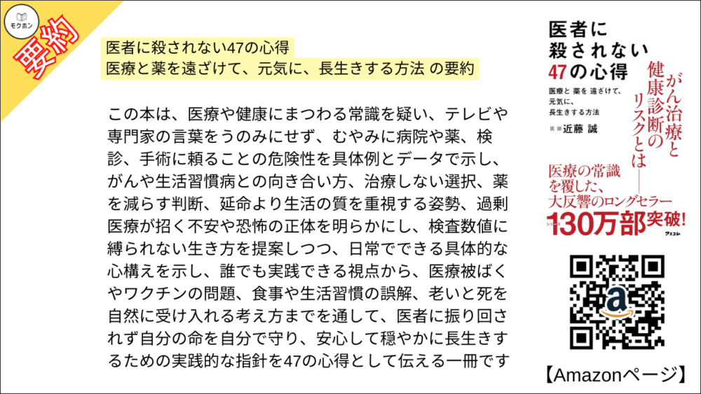 【全目次】医者に殺されない47の心得 医療と薬を遠ざけて、元気に、長生きする方法 / 近藤 誠 【要約・もくじ・評価感想・モクホン】 #医者に殺されない47の心得 #近藤誠