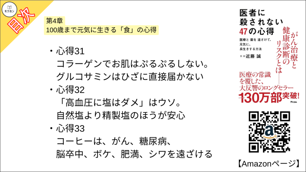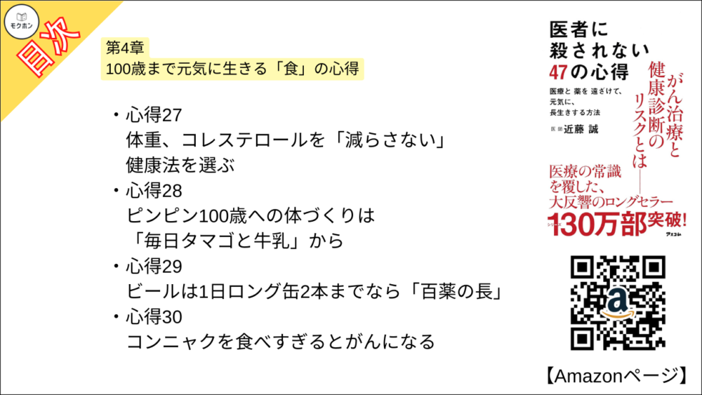 【医者に殺されない47の心得 目次】第4章 100歳まで元気に生きる「食」の心得【近藤 誠・要約・もくじ・モクホン】