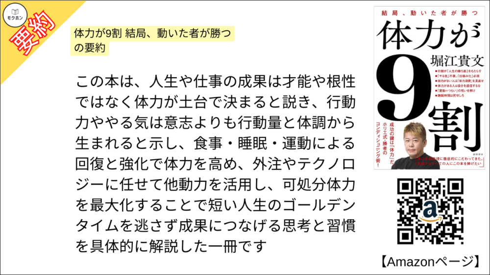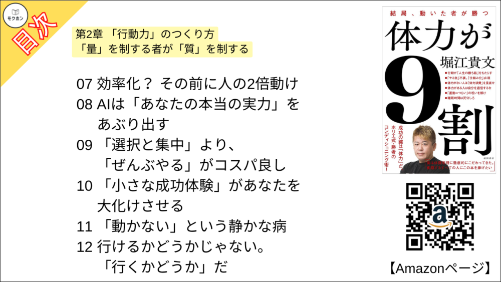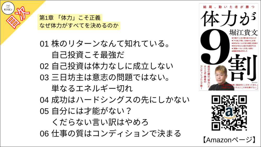 【全目次】体力が9割 結局、動いた者が勝つ / 堀江貴文(ホリエモン) 【要約・もくじ・評価感想・モクホン】 #体力が9割 #堀江貴文 #ホリエモン