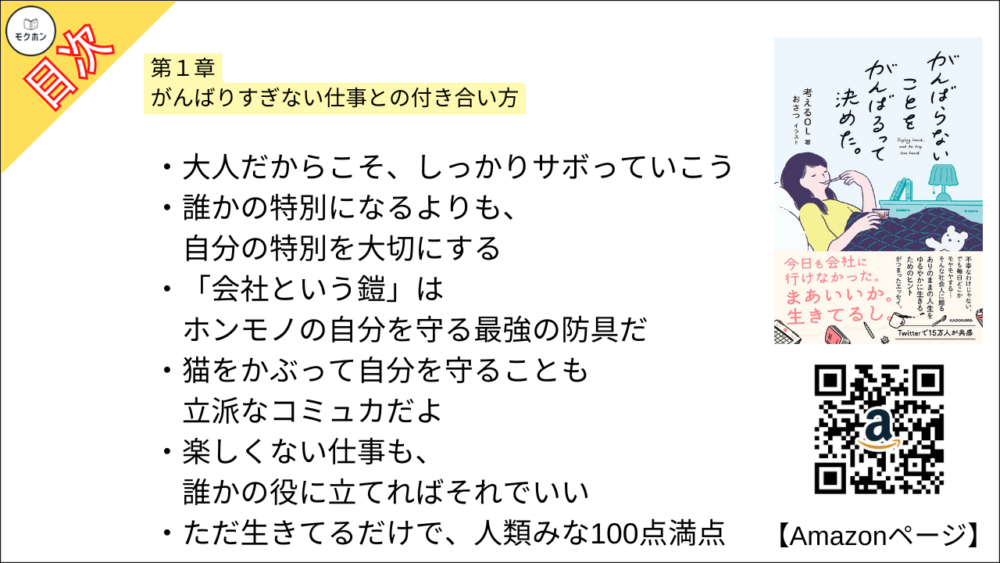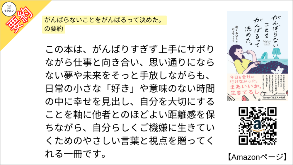 【全目次】がんばらないことをがんばるって決めた。 / 考えるOL 【要約・もくじ・評価感想・モクホン】 #がんばらないことをがんばるって決めた #考えるOL