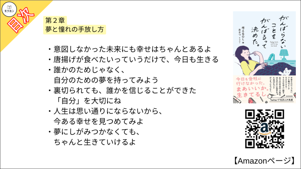 【がんばらないことをがんばるって決めた。 目次】第2章 夢と憧れの手放し方【考えるOL・要約・もくじ・モクホン】