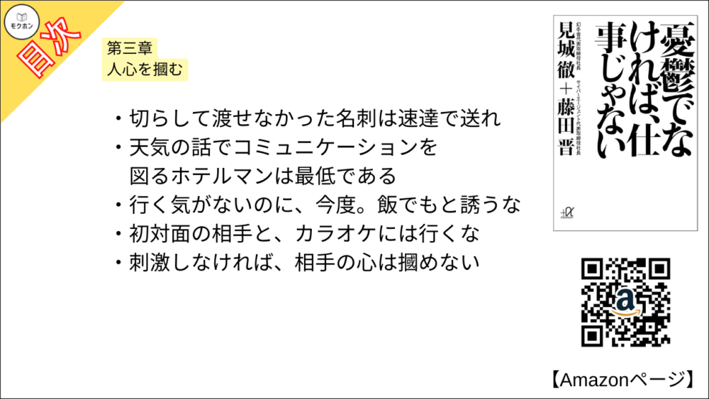 【憂鬱でなければ、仕事じゃない 目次】第三章 人心を摑む【見城 徹、藤田 晋・要約・もくじ・モクホン】
