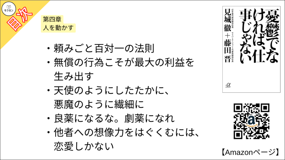 【憂鬱でなければ、仕事じゃない 目次】第四章 人を動かす【見城 徹、藤田 晋・要約・もくじ・モクホン】