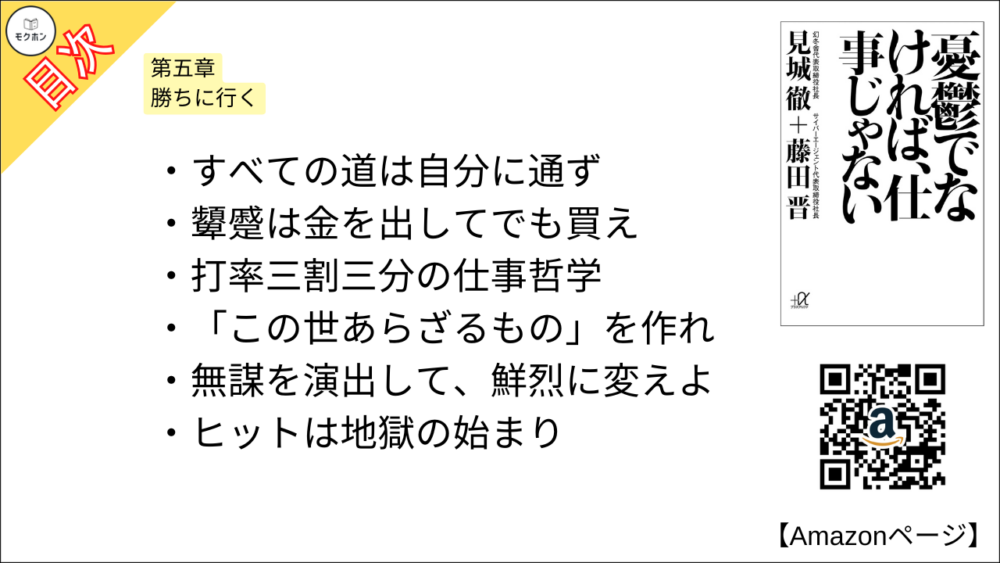 【憂鬱でなければ、仕事じゃない 目次】第五章 勝ちに行く【見城 徹、藤田 晋・要約・もくじ・モクホン】