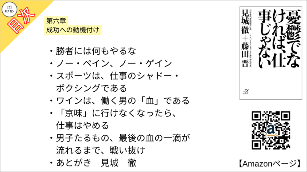 【憂鬱でなければ、仕事じゃない 目次】第六章 成功への動機付け【見城 徹、藤田 晋・要約・もくじ・モクホン】