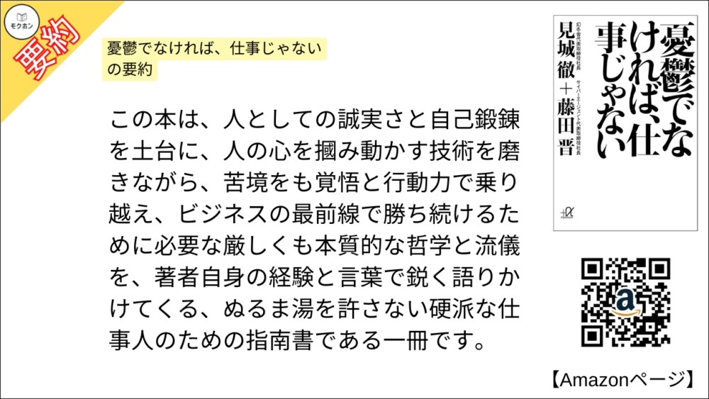 【全目次】憂鬱でなければ、仕事じゃない /見城 徹 、藤田 晋 【要約・もくじ・評価感想・モクホン】 #憂鬱でなければ仕事じゃない #見城徹 #藤田晋