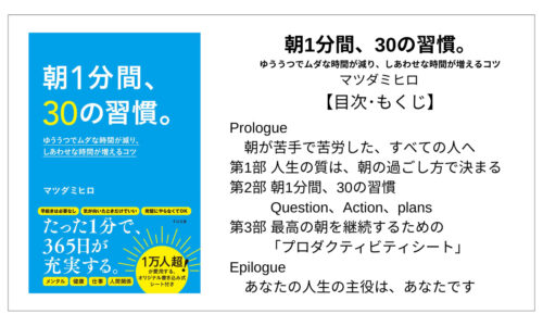 目次は本の要約が書かれており、伝えたいことが学べるので本の内容を一気に知ることができます。