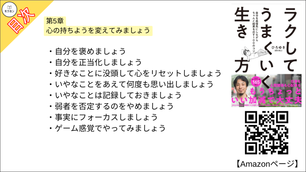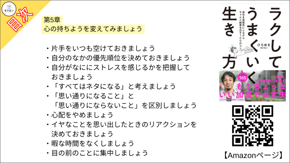 【ラクしてうまくいく生き方 目次】第5章 心の持ちようを変えてみましょう【ひろゆき(西村博之)・要約・もくじ】