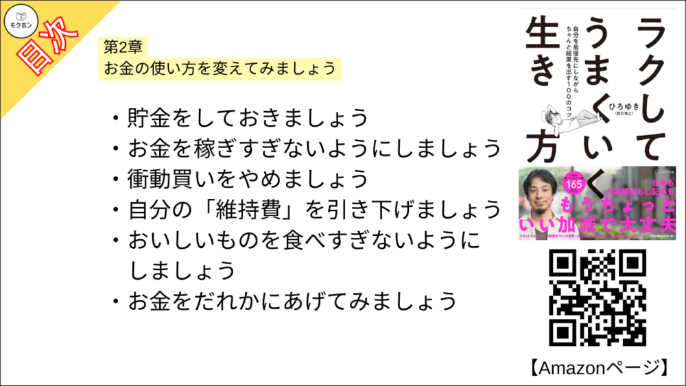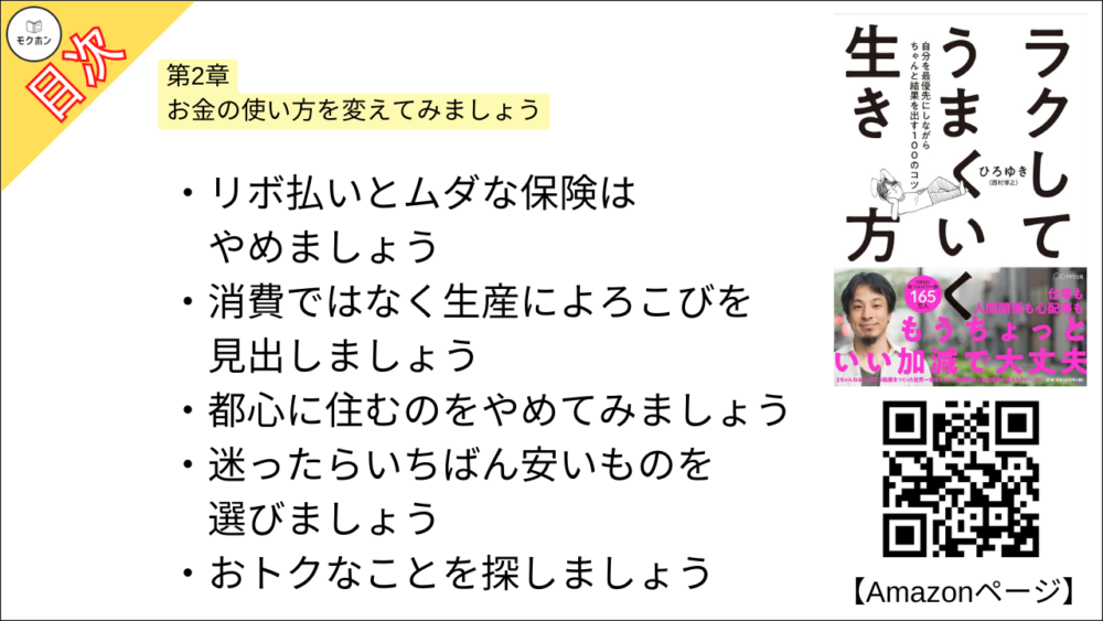 【ラクしてうまくいく生き方 目次】第2章 お金の使い方を変えてみましょう【ひろゆき(西村博之)・要約・もくじ】