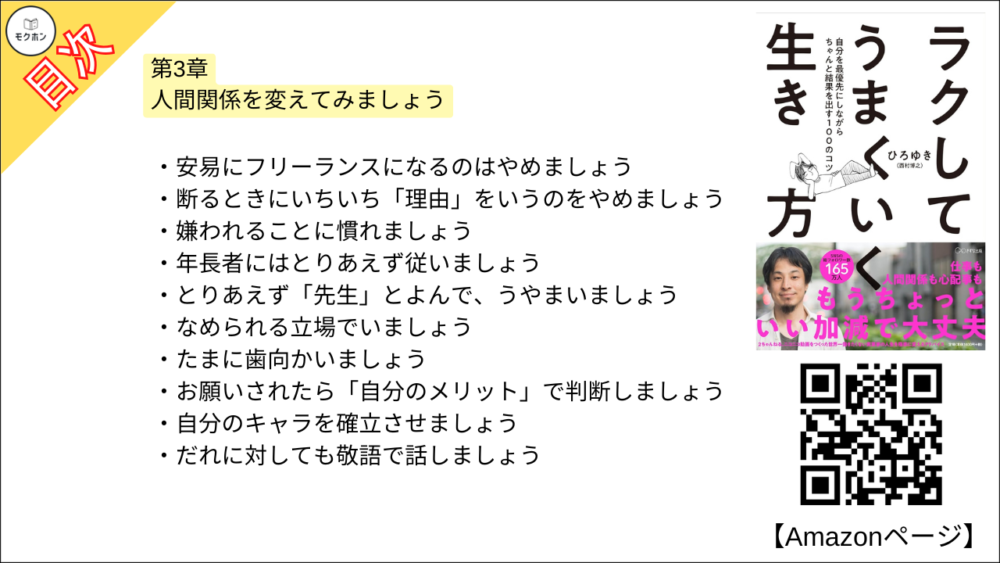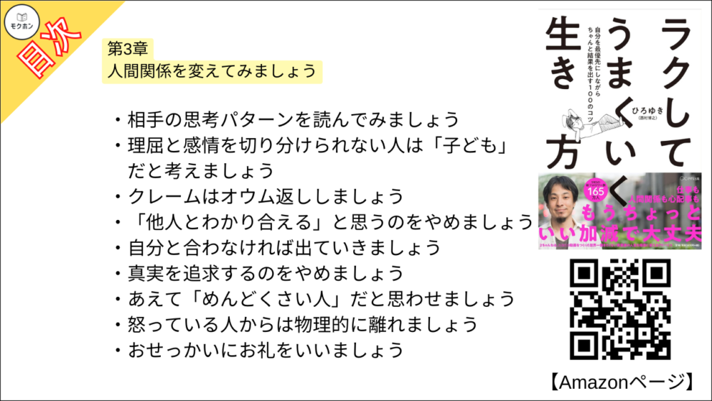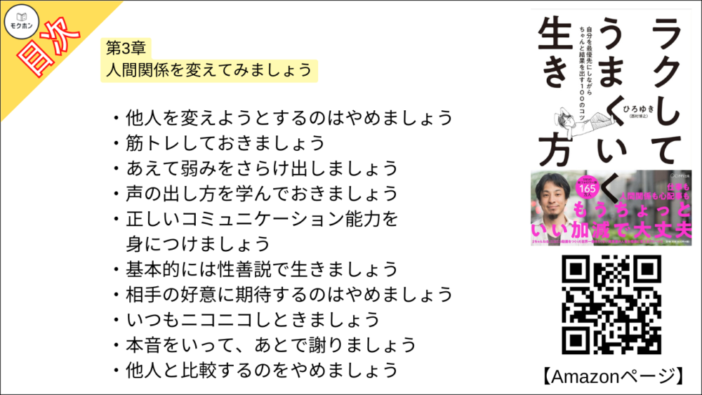 【ラクしてうまくいく生き方 目次】第3章 人間関係を変えてみましょう【ひろゆき(西村博之)・要約・もくじ】