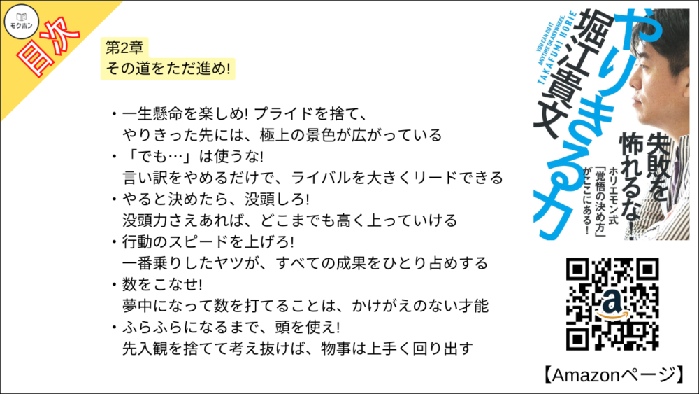 【やりきる力 目次】第2章 その道をただ進め!【堀江貴文(ホリエモン)・要約】