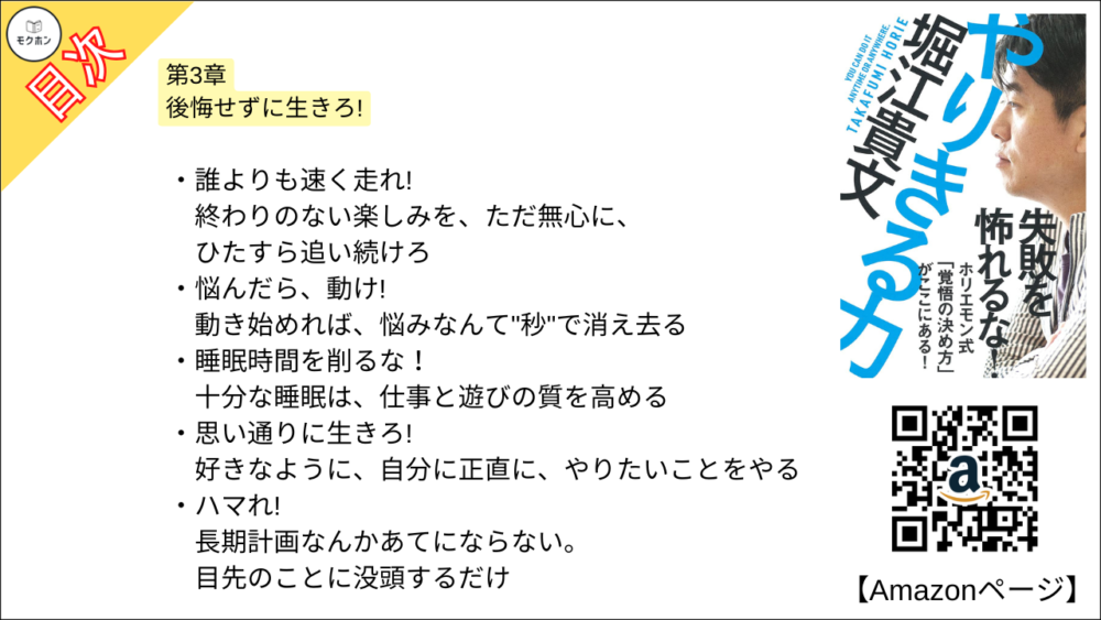 【やりきる力 目次】第3章 後悔せずに生きろ!【堀江貴文(ホリエモン)・要約】