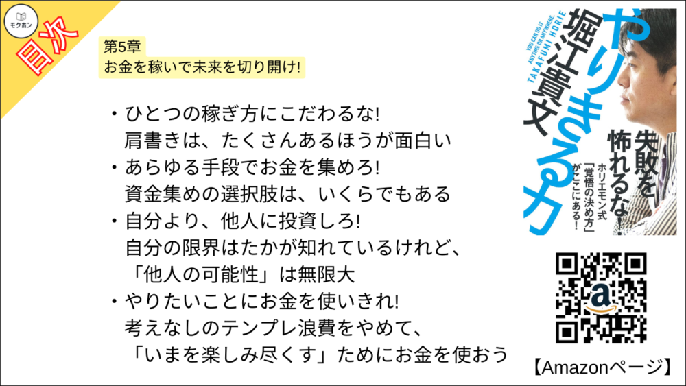 【やりきる力 目次】第5章 お金を稼いで未来を切り開け!【堀江貴文(ホリエモン)・要約】