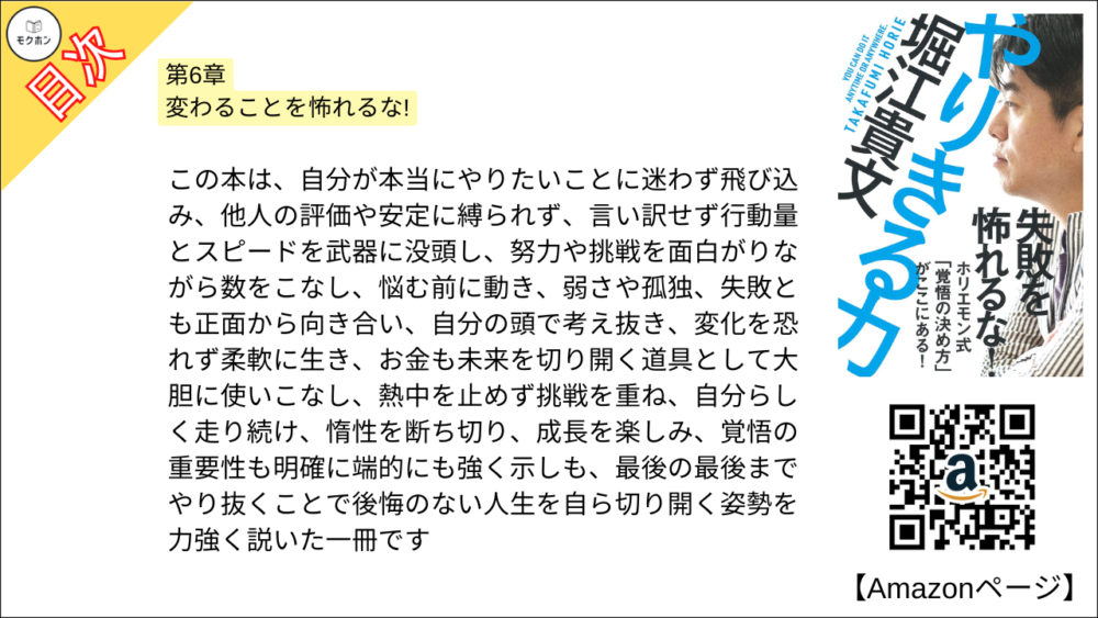 【やりきる力 目次】第6章 変わることを怖れるな!【堀江貴文(ホリエモン)・要約】