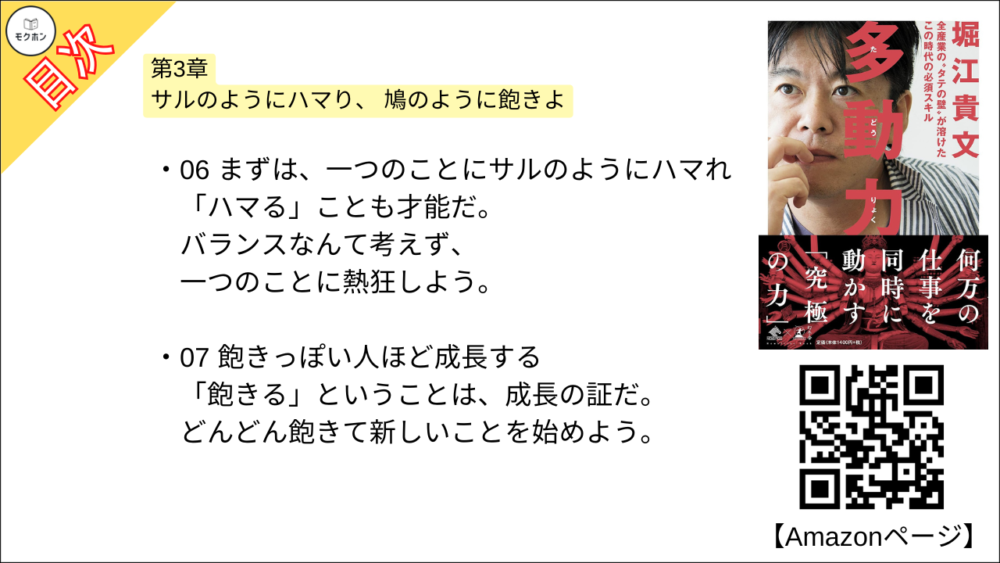 【多動力 目次】第3章 サルのようにハマり、 鳩のように飽きよ【堀江貴文(ホリエモン)・要点・もくじ】