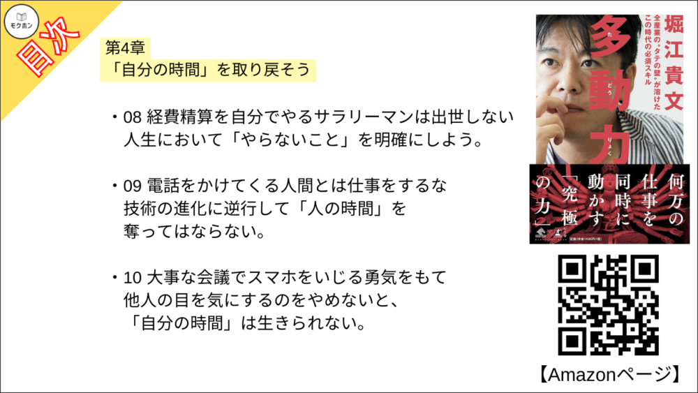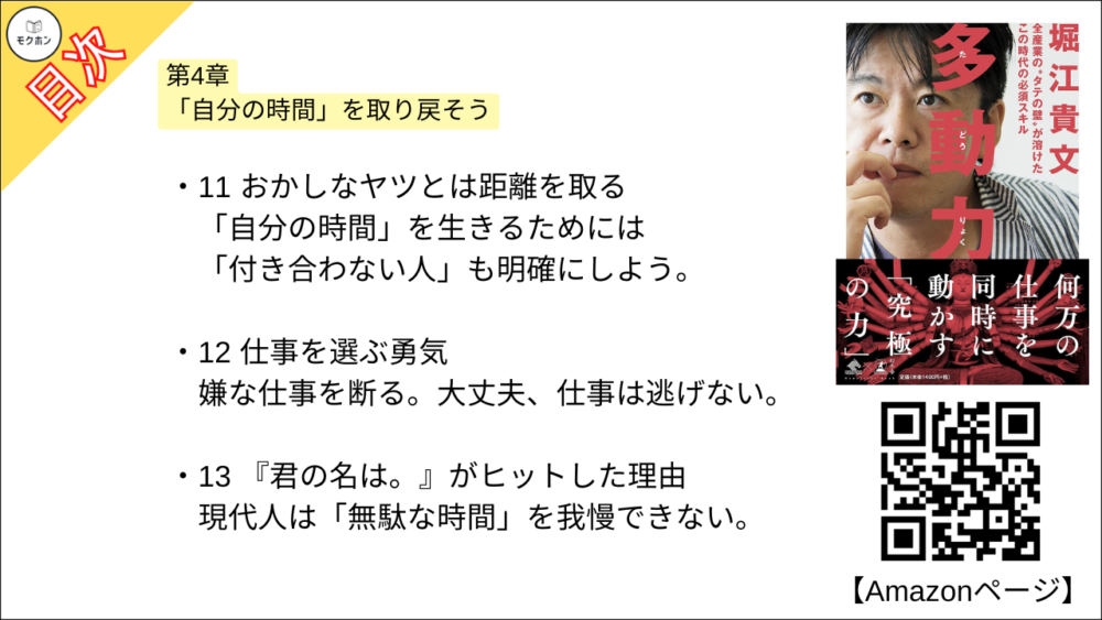 【多動力 目次】第4章 「自分の時間」を取り戻そう【堀江貴文(ホリエモン)・要点・もくじ】