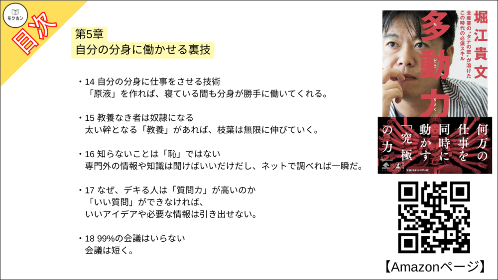 【多動力 目次】第5章 自分の分身に働かせる裏技【堀江貴文(ホリエモン)・要点・もくじ】