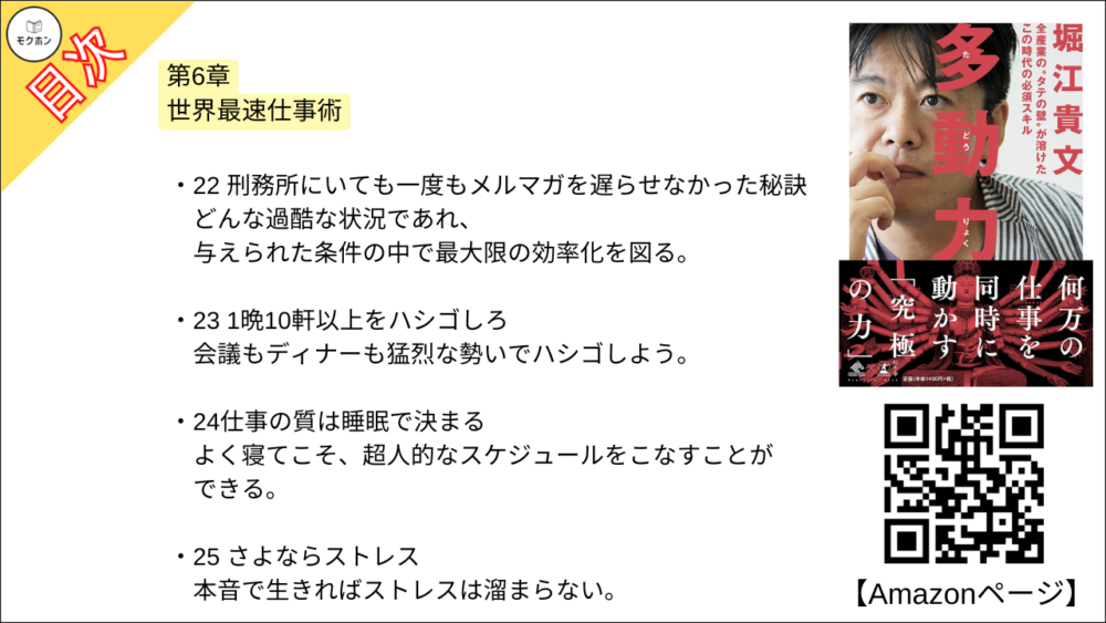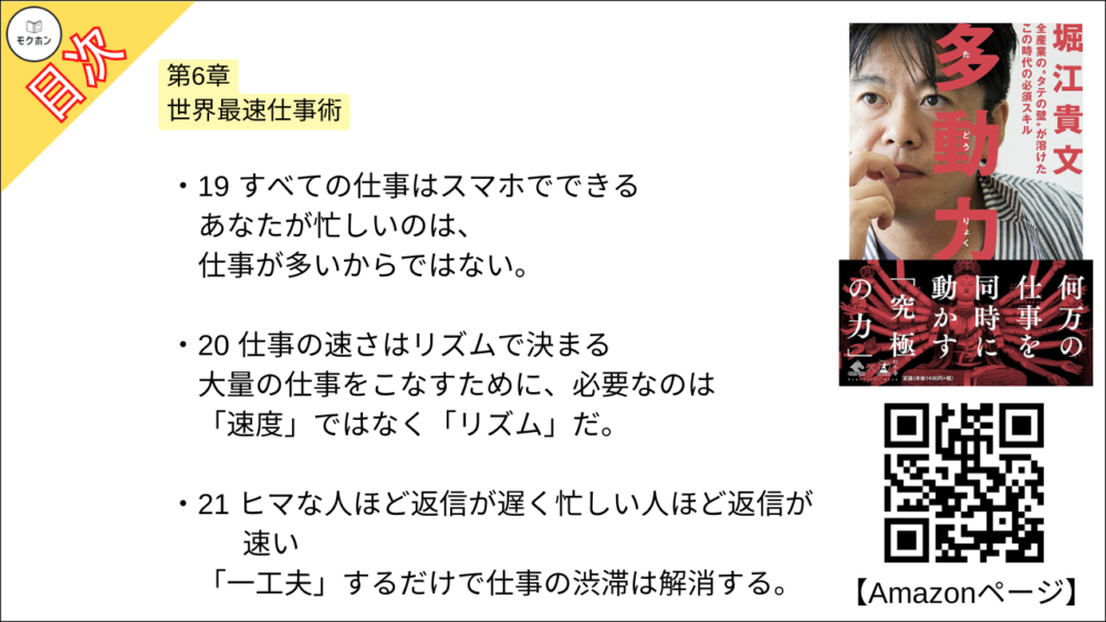 【多動力 目次】第6章 世界最速仕事術【堀江貴文(ホリエモン)・要点・もくじ】