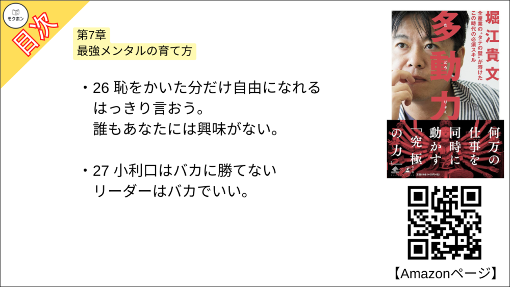 【多動力 目次】第7章 最強メンタルの育て方 【堀江貴文(ホリエモン)・要点・もくじ】