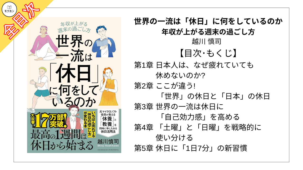 目次は本の要約が書かれており、伝えたいことが学べるので本の内容を一気に知ることができます。