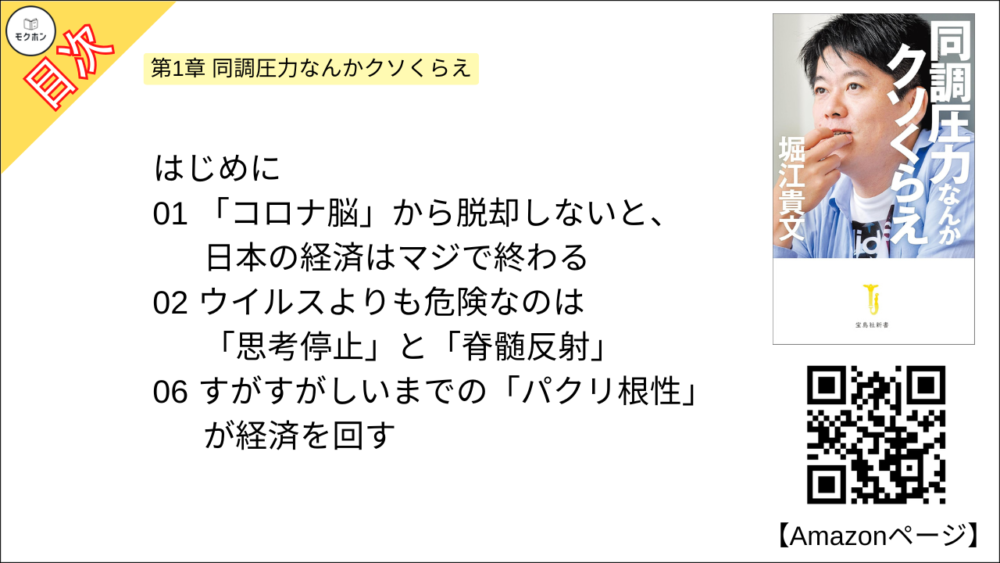 【同調圧力なんかクソくらえ 目次】第1章 同調圧力なんかクソくらえ【堀江貴文(ホリエモン)・要約】