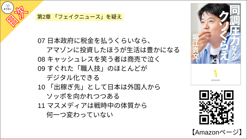 【同調圧力なんかクソくらえ 目次】第2章 「フェイクニュース」を疑え【堀江貴文(ホリエモン)・要約】