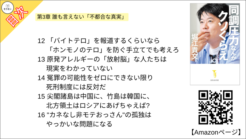 【同調圧力なんかクソくらえ 目次】第3章 誰も言えない「不都合な真実」 【堀江貴文(ホリエモン)・要約】