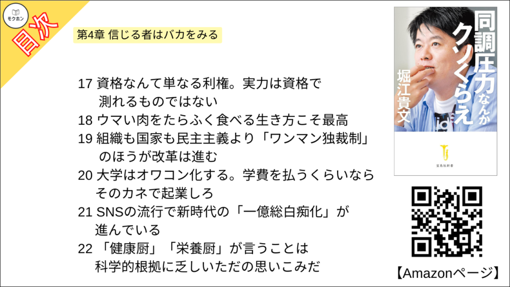 【同調圧力なんかクソくらえ 目次】第4章 信じる者はバカをみる【堀江貴文(ホリエモン)・要約】