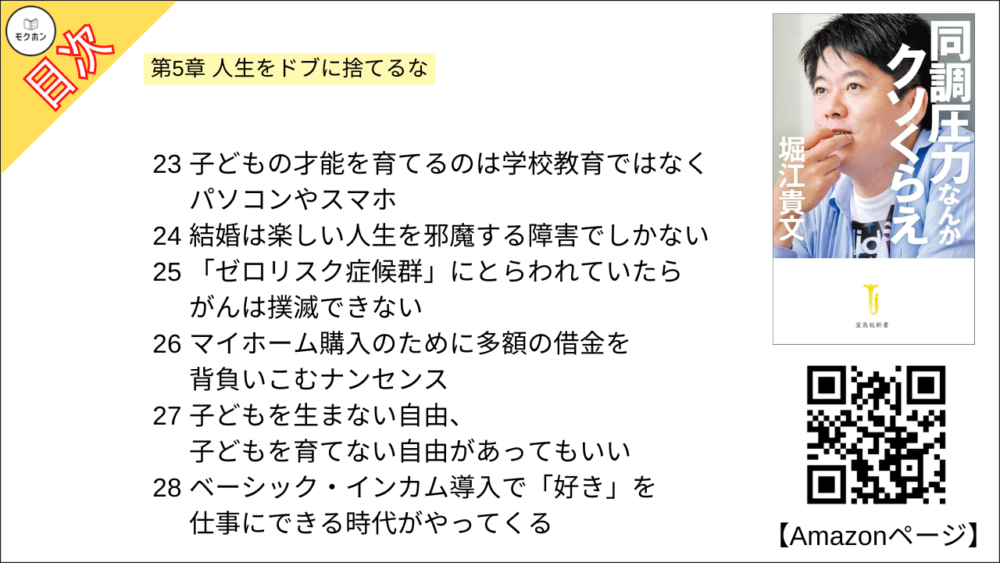 【同調圧力なんかクソくらえ 目次】第5章 人生をドブに捨てるな【堀江貴文(ホリエモン)・要約】