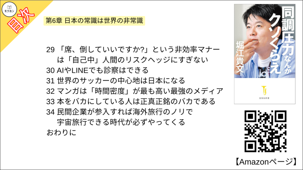 【同調圧力なんかクソくらえ 目次】第6章 日本の常識は世界の非常識【堀江貴文(ホリエモン)・要約】