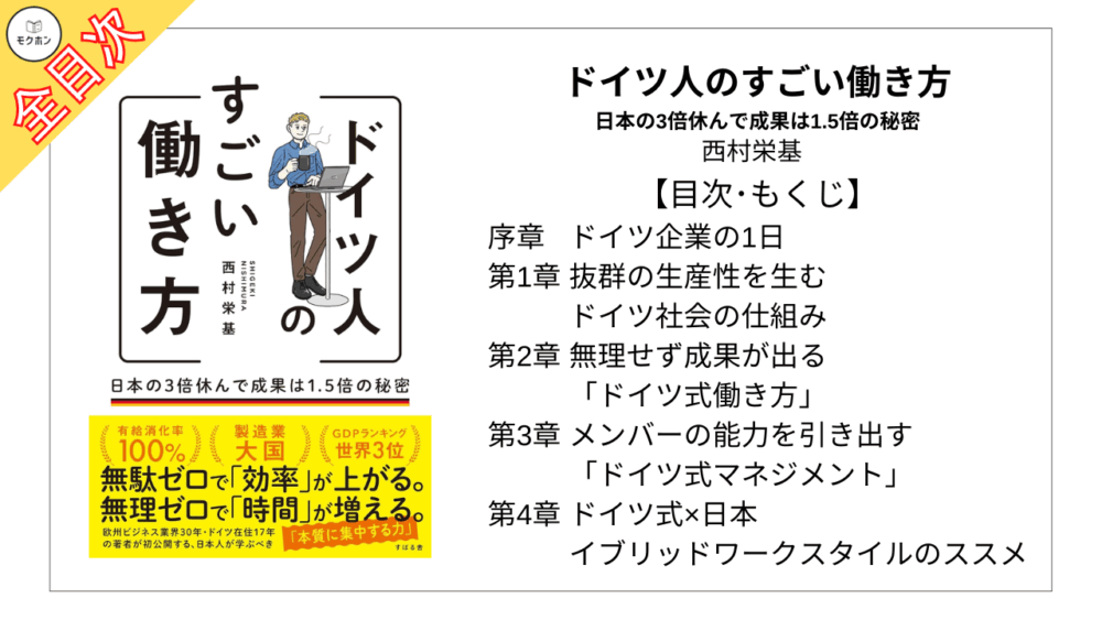目次は本の要約が書かれており、伝えたいことが学べるので本の内容を一気に知ることができます。