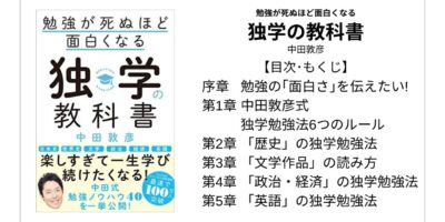 中田敦彦 さんの「勉強が死ぬほど面白くなる独学の教科書」の全もくじを紹介します。