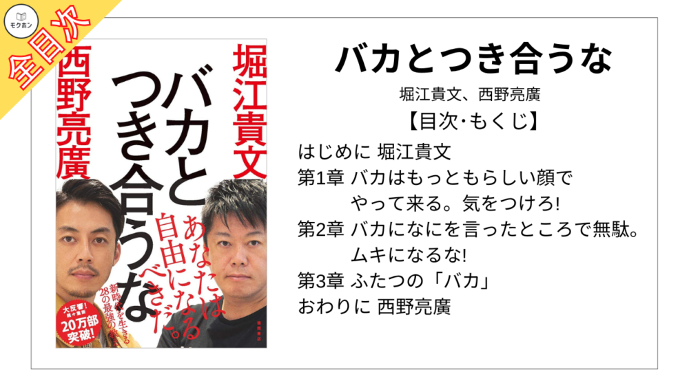 堀江 貴文さんの「ウシジマくんVSホリエモン カネに洗脳されるな!」の全もくじを紹介します。