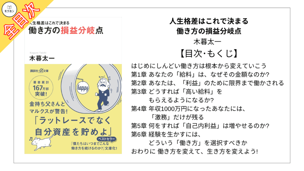 【全目次】人生格差はこれで決まる 働き方の損益分岐点 / 木暮太一【要約・もくじ・評価感想】 #人生格差はこれで決まる #木暮太一